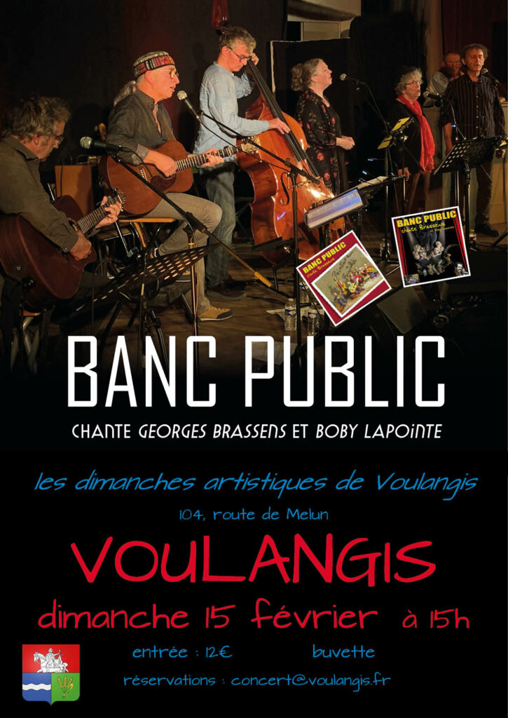 Le groupe Banc Public revient à Voulangis le dimanche 15 février avec un répertoire toujours aussi riche des chansons que l’on aime de Brassens et de Boby La pointe.